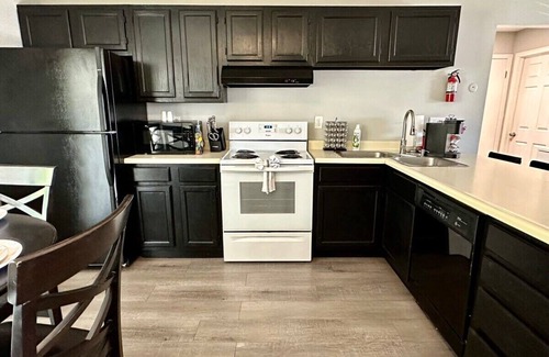 -Fully Equipped Kitchen – Includes a coffee maker, blender, toaster, cookware, dining table, and dishwasher for convenient home-cooked meals.