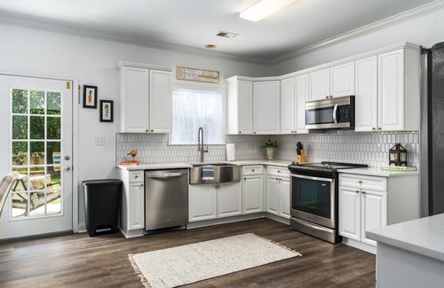 But wait, there's more! The whole home is yours to revel in. Imagine trading in a hotel room with just two beds and a TV for an entire haven complete with a fenced yard and a fully equipped kitchen. Pack your favorite bottle of wine and prepare for ultimate relaxation – we've set the scene for some serious R&R. The space has been thoughtfully designed to cocoon you in comfort, making sure every moment is a memory you'll treasure.