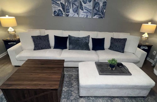 You'll feel “at home” as soon as you enter into this recently updated home! Its convenient location just a few minutes away from both the lake and town, huge oversized driveway to fit your vehicles and boat, along with the large front porch are just a few things that sets this special place apart from others. It has 3 bedrooms, 2 full baths, a large open living area, nice lake-themed and modern decor, wide hallway for ease, and an extra sitting area space for having guests over for playing cards or eating. Super close to restaurants, gas stations and of course, KY Lake! In a nice family friendly neighborhood that is right on the main way to all your planned activities on Hwy 68. Everything from bedding to appliances to furniture and even the decor in this place is new! BEDROOMS: 1 King size bed, 2 Queen size beds. New soft sheets, pillows, curtains, remote controlled lighting and fan, faux wood blinds for either added privacy or optimal brightness. 2 of the 3 beds have new memory foam mattresses. Modern decor and new furniture in all rooms, including some multi-outlet bedside tables for charging your phone & electronics. All beds have a padded mattress topper and come with plenty of pillows. Useable closets in all bedrooms to hang your clothes, and bedroom furniture to hold your items as well. A fold-out sleeper chair with blanket, comforter and pillow is located in the 3rd bedroom closet if needed. BATHROOMS: Updated shower heads in both, 1 has a bath & shower, the other is shower only. Soft absorbent towels and some essential toiletry items are provided. LIVING AREA: large oversized couch w/ottoman & oversized chair w/ ottoman, coffee table and side tables & lamps, plenty of pillows and blankets, TV with cable and internet, coat closet & key rack. If needed, 1-2 people could sleep on the couch and another could sleep on the chaise comfortably. Coat closet has a shoe rack and lets you hang your coat, and also has some games on the top shelf. Functional electronic fireplace & adjustable remote lighting for ceiling fan and wall sconces. Wide hallway for easy walk-through. SUNROOM: has an extra 4-top table & chairs attached to the kitchen for additional seating and barn-doors for privacy from the rest of the house. LAUNDRY: functional washer & dryer if you choose to do laundry during your stay, some detergent will be provided. KITCHEN/DINING: stocked with plenty of various size plates and cups, utensils, pizza pan, baking sheet, pot, pan, large boiling pot, cooking spoons and other cooking tools, essentials like paper towels, extra trash bags, pantry for your snacks, Keurig pod coffee maker, remote controlled adjustable light with fan, and seating for 4. Pantry holds many essentials including the coffee supplies, toaster, waffle maker, and air fryer. Extra dining seating available in the sunroom area. OUTSIDE: extra large paved parking space for you and your guests to park your vehicles, boat, etc. Full length front porch with seating for 8. Backyard and side yard area to play in. Steps going into the home are the only stairs (no upstairs inside) and they are not steep
