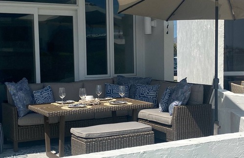 Downstairs includes two bedrooms (one with king bed and bathroom and one with three queen beds) one and a half bathrooms. Downstairs TV area (great for teenage hangout) Washer and dryer/ dishwasher. Quiet community. Beautiful outdoor seating area with nice view of tennis court, pool and ocean. Propane grill available for outside cooking. Great location for biking(bikes in garage). (Discounts offered for monthly rentals!!!!)
