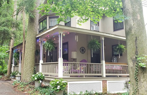Set in the historic camp meeting community of Mt. Gretna, this circa 1910 cottage is a restful break from the fast pace of modern life. It has been updated while retaining its historic charm. Some streets are pedestrian only and all are very narrow. Parking is limited to the church parking lot 1 minute walk from our cottage and a few community lots.