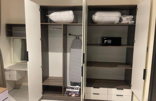 BathroomShower, Free toiletries, Body soap, Towels, Toilet, Guest bathroom, Toilet paperMedia & TechnologyTV, Streaming service (like Netflix), Flat-screen TVGeneralFan, Private entrance, Air conditioning, Trash cans, Iron, Key access, Smoke Alarm, Fire extinguisherKitchenMicrowave, Electric kettle, Refrigerator, Kitchenette, Washing machine, High chair, Stovetop, Kitchen, Oven, Cleaning productsLiving AreaDesk, Sitting area, Dining areaBedroomLinens, Wardrobe or closetBuilding CharacteristicsSemi-detachedRoom AmenitiesDrying rack for clothing, Clothes rackFood & DrinkBottle of waterPhysical distancingSingle-room AC for guest accommodation |