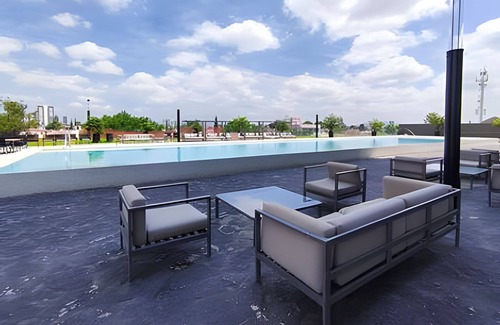 Welcome to your refuge in Guadalajara! This space offers you a unique experience with its minimalist design and industrial style details. Its location is simply enviable, with a supermarket and a wide variety of restaurants right below. But that's not all, the amenities will surprise you. Enjoy the outdoor pool to cool off in the sun, keep fit in the gym or relax in the movie theater.