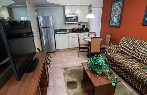 2 king suites, each with a dinning area, kitchen, and laundry room. Great view of the outside. There are 5 heated outdoor pools! Great privacy and fun place to vacation. Not far from the national park and Orlando!