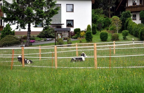 In the holiday house Vgb 18 Fleckl, at the foot of the Ochsenkopf, lies our spacious child- and pet-friendly holiday home. Surrounded by green meadows that are grazed by our animals in summer. In just a few minutes you can walk to the valley station / south of the Ochsenkopf, which can be climbed by cable car, on foot or by mountain bike. The idyllic Waldmoorbad offers our guests a pure nature experience. Even in winter there is a large selection of activities for skiers and sledders. A beginner lift with ski school connection is located directly at the house, there are also snowboarders and toboggans not too short. Modern meets country life - farm experience with cows, sheep, goats, chickens and cats. Leisure activities and sights are diverse in the region. Mountain biking at Ochsenkopf. Skiing in winter - ski lift in the neighborhood. Winter toboggan run - ski lessons in town. The Wagner city of Bayreuth is about 25 km away. We offer in our cottage for 8 people, a large kitchen, dining room and living room. Upstairs are 2 bathrooms, a sauna, and the bedrooms. Through a side entrance you reach the recreation room with pool table, darts, music system and a crosstrainer.