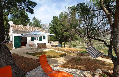 Seline 3 km from Starigrad-Paklenica: Single-family house "Mare", surrounded by trees. 1 km from the centre of Seline, in a secluded, quiet position, 150 m from the sea, 150 m from the beach. Private: property 1'000 m2 (fenced), garden with lawn and trees. Outdoor shower, garden furniture (swing). In the house: internet access. Parking at the house on the premises. Shop 1 km, restaurant 1 km, bus stop 3.6 km, pebble beach, shingle beach 150 m.