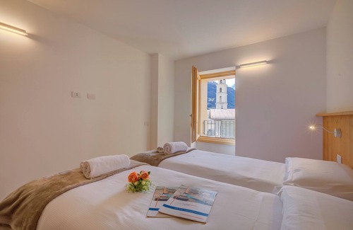 Located just a 15-minute walk from the historic centre of Bormio and surrounded by essential amenities, this tranquil one-bedroom vacation rental is ideal for small groups of 4 and families. The third-floor, mountain-view apartment features every comfort: from underfloor heating to indoor dining and a fully equipped kitchen with essential appliances like a dishwasher, induction hob, coffee machine, and fridge. This setup allows you to easily prepare meals while enjoying the convenience of modern amenities.