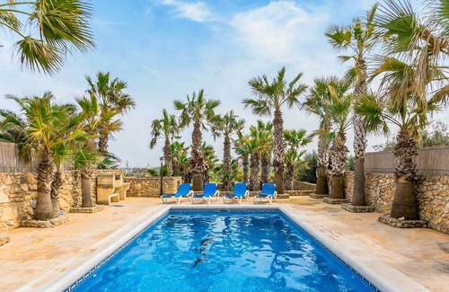 Veduta is a charming Gozitan house with many original features plus an inner courtyard, a large pool area, a palm orchard and a roof terrace with fantastic views of the Citadel over rolling fields and terraces.