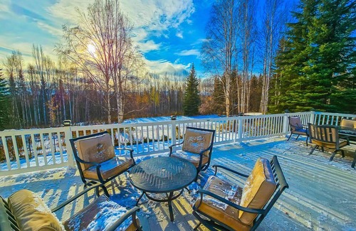 The house is nestled in the hills above Fairbanks, providing panoramic views of the surrounding natural beauty. You'll have a front-row seat to the stunning aurora displays that light up the Alaskan sky. NO NEED TO DRIVE ANYWHERE!