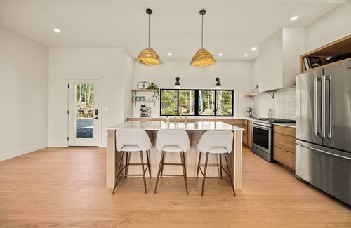 3.5 miles to Acadia National Park Visitor Center, 6.2 miles to Bar Harbor, and minutes from some of the best local dining. Tucked away on a peaceful dead-end road, Villa Acadia Retreat blends Mediterranean elegance with the natural beauty of Maine. Featuring sweeping mountain views and exquisite design details, this thoughtfully crafted home offers a serene escape for those seeking luxury, tranquility, and a connection to the stunning landscapes of Mount Desert Island. Designed for convenience, Villa Acadia Retreat offers all-one-floor living, making it accessible and comfortable for guests of all ages. Upon entering through a stunning full glass entry door, you are immediately greeted by the home’s open, airy feel. The living area is designed for relaxation, with custom fixtures, a fireplace perfect for cozy evenings, and large double slider doors that open to a spacious covered patio. Enjoy your morning coffee while taking in panoramic views of Acadia’s mountains or unwind by the fire pit in the evening under the stars. The chef’s kitchen is a true masterpiece. Perfect for entertaining, the kitchen flows seamlessly to the bocce ball court in the backyard, where a grill and pass-through window create an effortless indoor-outdoor dining experience. Enjoy meals in the exterior dining space, or retreat to the interior dining area for an intimate meal with a view. The master ensuite features its own fireplace, custom closet, and a spa-like en suite bathroom with microcement shower and heated towel rack. To enhance your stay, we provide complimentary coffee, tea, snacks, and propane for the grill, ensuring you have everything you need to enjoy your time. Whether you’re exploring the nearby trails or simply unwinding at home, this retreat offers everything you need for the ultimate getaway. *Please note: There is a steep driveway and steep hill in front yard. The owner lives in a private garage apartment on the property, ensuring full privacy for guests while maintaining a nearby presence if assistance is needed. Location: - 3.5 miles to Acadia National Park Visitor Center - 3.1 miles to Hadley Point Beach just a short drive away and the heart of - - 6.1 miles to downtown Bar Harbor Living Area: - Custom electric fireplace with sofa and chairs - Double doors to covered patio Kitchen: - A fully equipped kitchen featuring stainless steel appliances, quartz countertops, and an island breakfast bar with seating for 3. - Includes a refrigerator, freezer, gas range, microwave, and dishwasher, along with essential cooking utensils, silverware, dinnerware, blender, toaster, a coffee maker and espresso machine. - Welcome basket with snacks, coffee, and tea to enjoy during your stay. - Paper Towels, Sponges, Dish Soap, Dishwasher Pods, Olive Oil, Spices, and Trash Bags provided. Dining Area: - A dining table accommodating 6 guests with an open layout to the kitchen and living area. *Separate AC wall unit to keep everyone comfortable in main living area. Bedroom 1: - King-sized bed - Trundle Twin - In room smart TV - Spacious closet & dresser - Bathroom outside room: sink vanity w/shower & tub - Heated towel rack - AC wall unit Bedroom 2: - Queen-sized bed - In room smart TV - Closet - Desk & chair - AC wall unit - Shares en suite bathroom with Master - Dual sinks, large custom microcement shower - Heated towel rack Bedroom 3: (Master) - King-sized bed - In room smart TV - Custom electric fireplace - Custom closet - AC wall unit - En suite bathroom shared with Bedroom 2 - Dual sinks, large custom microcement shower - Heated towel rack Entryway: - Sitting area Laundry: - Fully equipped with a washing machine and dryer - Detergent and dryer sheets provided Additional Items: - Pack and Play available. Please request in advance! Other Items Provided: - Hand Soap, Shampoo, Conditioner, Body Wash, Bath Towels, Hand Towels, Wash Cloths, All Bedding, and Throw Blankets. Patio/Front Yard: - Mountain Views - Fire pit with seating area - Swings - Exterior Dining Back Yard: - Propane Grill - Bocce Ball Court - Pass-through window to the kitchen