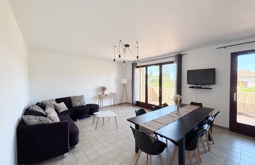 The villa itself is a haven of peace, with spacious, light-filled spaces to relax and recharge. The comfortable bedrooms offer private space for each guest, while the living room and fully equipped kitchen are perfect for getting together and sharing moments together.