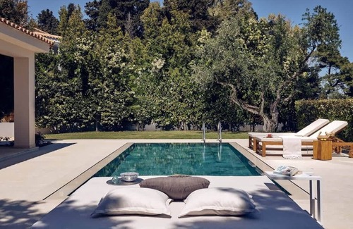 Outdoors, unwind in the private pool surrounded by sunbeds and a large garden terrace. A shaded BBQ and dining area makes entertaining easy, while kids can enjoy playing safely on the lawn. This is your peaceful Ionian escape with all the comforts of home.