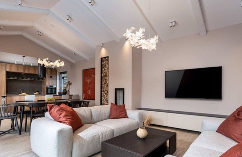The house is suitable for 8 people, has a living area of 180 sqm on two floors. The ground floor has a spacious living room, a fully equipped kitchen, a dining table, two bedrooms with double beds and en-suite bathroom. The second floor of the house has a sauna with en-suite bathroom and two more bedrooms with double bed and en-suite bathroom.