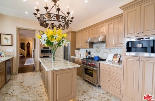 Gated, quiet, and totally private Mediterranean estate through the east gate of Bel Air. Unobstructed views of the ocean, city, and canyon. Spacious living room and dining area with door to ceiling windows. Separate office and media room. Brand new cook’s kitchen with breakfast area and laundry room. Guest bedroom suite and two powder rooms complete the main level. The master suite and sitting area with full bath and huge walk in closet plus three additional bedrooms, three baths, and a gym.