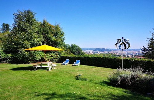 Villa - Floor with garden and terraces is located in Eggenberg. Villa - Floor with garden and terraces provides accommodation, featuring Air Conditioner, Parking, Fireplace/Heating, among other amenities. This Villa features Air Conditioner, Parking, Fireplace/Heating, to make your stay a comfortable one.