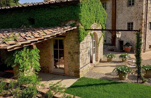 Located between Florence and Siena in the Chianti region of Tuscany, Villa Lusso is a lovingly restored mill with a private swimming pool. This charming villa is surrounded by lush and colourful vegetation and has rustic and historic touches throughout. The villa is within a short driving distance of the nearest shops and restaurants and is conveniently located for exploring must-see Tuscan towns such as San Gimignano, Florence, and Siena, if you choose to drive from the villa.