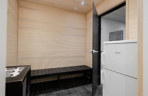 2 extra sleeping places on downstairs sofa and 2 extra matresses. Hot tub on the terrace with direct access to sauna.