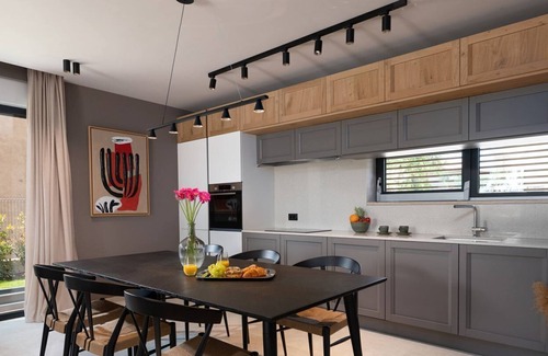 Villa San Vincenti is the perfect choice for all lovers of modern architecture. It is located on the edge of the village of Kadumi and offers a beautiful panoramic view of the vineyards. Just a few minutes' drive away are pebble beaches, shops, cafés and 300 metres from the house guests can visit a restaurant serving local cuisine. In its enclosed garden of 830 sqm, guests can enjoy a heated swimming pool with counter-current, 4 sun loungers, 2 parasols, a covered terrace with outdoor dining table and barbecue, outdoor hot tub and 2 parking spaces.