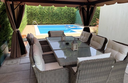 Villa located in a very quiet residential area surrounded by greenery and the famous Prosecco vineyards and red wines of the Veneto countryside. Very close to Venice (50 minutes by car) and seaside tourist centers such as Jesolo and Caorle (40 minutes by car), Outlet Noventa di Piave for fashion shopping (20 minutes by car), Treviso (35 minutes by car), Pordenone ( 30 minutes by car), Aviano (30 minutes by car), Lake Santa Croce for sports activities in the lake and Barcis lake (both 30/40 minutes by car). From the splendid Dolomites it is about 90 minutes by car to reach Cortina. Valdobbiadene and Conegliano, always the heart and home of Prosecco and recently declared a UNESCO HERITAGE, are only 30/40 minutes away by car. The house is finished with high quality materials and equipped with all comforts. Underfloor heating, air conditioning, gas and induction for cooking, 55 inch television, mega adsl with wifi, washing machine, American fridge, additional external freezer plus complete accessories for cooking and eating. Outside the house there are 350 square meters of fenced garden with hedge and a 35 square meter swimming pool as shown in the photos. The villa consists of an open space with kitchen, living room and glass teka cellar with temperature control. An 8 sqm bathroom and a 16 sqm dining room which seats 12 and has access to the front garden.