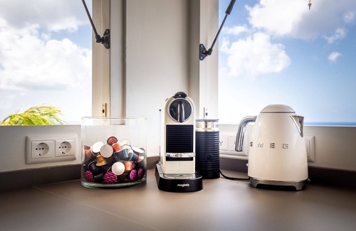 The open kitchen has an induction stove, a Smeg kettle, a Smegg dishwasher and a Nespresso coffee machine. There is a digital tv in the villa with all the (international) tv channels you can imagine.