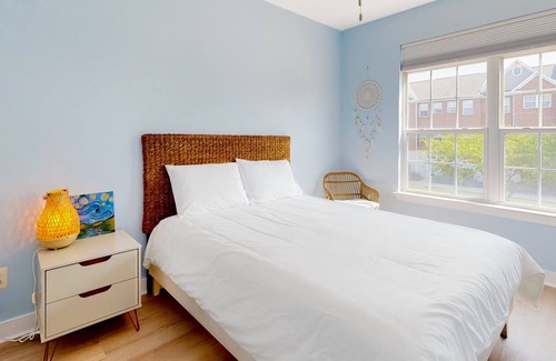 The bedrooms are equally bright and spacious, each adorned with soft linens, inviting color palettes, and cool air - thanks to the home's central air-conditioning. Off the primary bedroom, indulge in some self-care as you sink into the warmth of the soaking tub.