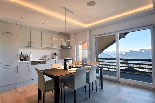 Food & DrinkTea/Coffee makerBathroomBathtub, Toilet, Private bathroom, Shower, Bathtub or shower, Toilet paper, Towels, HairdryerMedia & TechnologyMobile hotspot device, iPad, Pay-per-view channels, Cable channels, TV, Satellite channels, Flat-screen TVOutdoorsOutdoor furniture, Patio, Balcony, Outdoor dining areaKitchenRefrigerator, Stovetop, Dishwasher, Oven, Kitchen, Kitchenware, Coffee machine, Toaster, Dining table, Cleaning products, Electric kettle, Wine glassesLiving AreaFireplace, Sofa, Sitting area, Dining areaGeneralTrash cans, Tile/Marble floor, Private entrance, Heating, Fire extinguisherViewMountain view, ViewBedroomWardrobe or closet, Childrens' cribs, LinensAccessibilityRaised toilet, Upper floors accessible by stairs only, Accessible by elevator, Lower sinkBuilding CharacteristicsPrivate apartment in buildingRoom AmenitiesSofa bed, Feather pillow, Socket near the bed, Adapter |