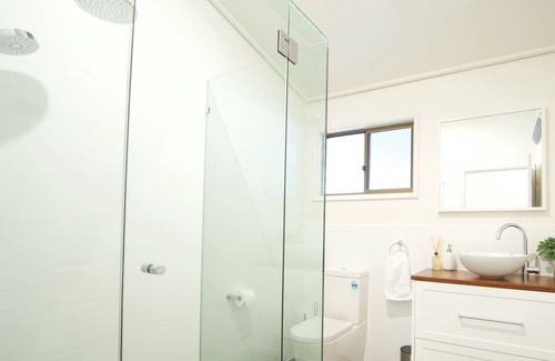 Exclusively yours to enjoy, the provincial /Hamptons styled house offers three bedrooms, along with modern open plan living spaces. The huge kitchen is fully equipped including an oven, microwave, fridge/freezer, and dishwasher. There is a large island bench for communal dining.