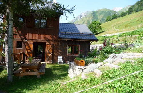 Large garden and terrace around the chalet with a view of Mont Blanc and the Col de la Madeleine. Quiet and not overlooked, the chalet and the garden allow you to spend a good holiday for nature lovers.
