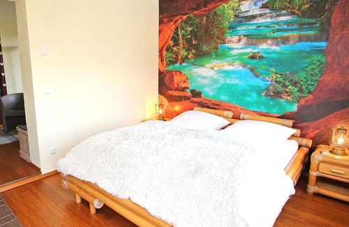 Relax in the garden or sip a drink on the balcony of this 484-sq-ft apartment, which also offers a BBQ grill. For a change of scenery, come inside and enjoy the internet.