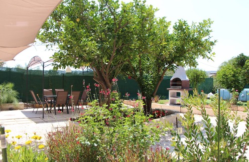 In all: 4 bedrooms, 2bathrooms, 2 kitchens, 1 living room, 1 fireplace, air conditioning, BBQ, 2 pavilions, (terrace and garden), family liner swimming pool 3.5x7m, sunbeds, indoor and outdoor dinning tables, washing machine, dishwasher. Portable baby cot can be used in any of the bedrooms.