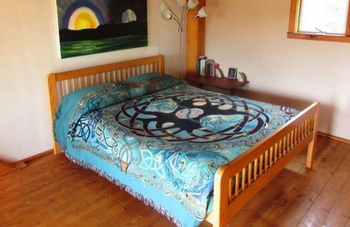 Above the main floor, there are 2 additional levels where there are 5 bedrooms 2 with Queen size beds, & 2 with Full size beds, 1 with bunk beds, & 2 Full size couch futons in the living-room (6th bedroom). Fold-up mattresses for the floor, are available if additional sleeping arrangements are needed. Depending on how your group is configured & how the bed space is utilized, we have been able to accommodate up to 15 people at a time. Please note, that we would need to communicate regarding this, so that we can prepare accordingly. Please give us advance notice so that we can make all of the necessary arrangements so that everyone will be comfortable. We provide linens & towels for your convenience. We have DSL & wireless internet if you bring your own devices, ie computer, etc, & there is a flat screen TV here for on-line streaming. Water is hot & cold, & is plentiful straight from the mountain to the well to you. There is laundry in the basement if needed upon request, however, the basement is reserved as utility space for owner use & is not part of the rental.