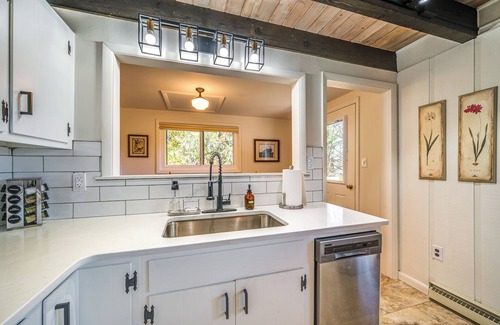 Rustic charm meets modern convenience in a seamless blend at this Fairfield, PA, vacation rental. Whether you want to get out on the ski slopes or step back in time at Gettysburg, you’ll love returning to this 3-bed, 2-bath home after your adventures. Start your days watching the sunrise over the lake and spend evenings cozying up by the fireplace with loved ones.