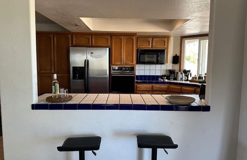 Welcome to Cosmic Cowboy in Pioneertown, CA – where history, rustic charm, and modern comfort collide in the heart of the Old West. Walking distance from the heart of Pioneertown, you'll be able to walk and enjoy dinner and a concert at the famous Pappy & Harriets and a drink at Red Dog Saloon. immerse yourself in the fascinating past of Pioneertown and soak in the breathtaking views of the surrounding mountains and valley while enjoying all the modern amenities of this ranch-style home.