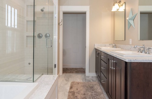 -Ensuite Master Bathroom with large soaking tub, rainfall shower and double vanity