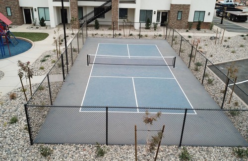 Wanderlust is located above the pool area, with a view of Freedom Village amenities, pool, playground, pickleball court for easy viewing of the fun. Covered parking is conveniently located. There is a barbeque for your use located by pickleball court.