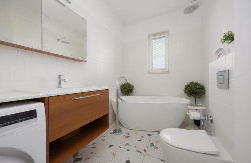 Food & DrinkTea/Coffee makerInternetInternet facilities, Wireless internetBathroomToilet, Shampoo, Private bathroom, Toilet paper, Free toiletries, Towels, Body soap, Bathtub, HairdryerMedia & TechnologyFlat-screen TV, Cable channels, TVGeneralHeating, Key access, Hardwood or parquet floors, Ironing facilities, Private entrance, Iron, Trash cansKitchenWine glasses, Refrigerator, Kitchenette, Dishwasher, Washing machine, Kitchen, Dining table, Oven, Kitchenware, Stovetop, Electric kettleLiving AreaSitting area, Dining area, Sofa, DeskOutdoorsTerrace, Outdoor dining area, Patio, Outdoor furnitureBedroomLinens, Childrens' cribs, Wardrobe or closetBuilding CharacteristicsPrivate apartment in buildingRoom AmenitiesClothes rack, Sofa bed |