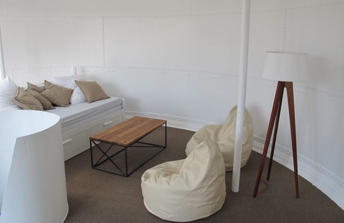 The living room is now at the top of the former water tank itself. A large window was cut into the riveted tank wall, which gives a clear view of the wildlife park. In this extraordinary room there is another sleeping possibility for 2 people.