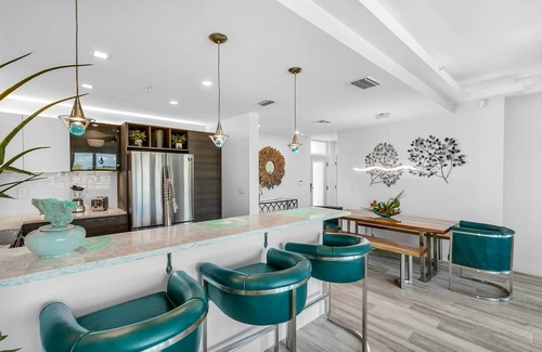 Discover unmatched luxury in our Captain's Stateroom, elevated for breathtaking canal views. Featuring the grandeur of the Officer's Stateroom with two kings and a queen bed, its open-plan living and full kitchen are designed for comfort. Witness rocket launches and marine life from the north-facing balcony. Amenities include laundry and a queen sleeper sofa, ensuring a supremely luxurious stay.