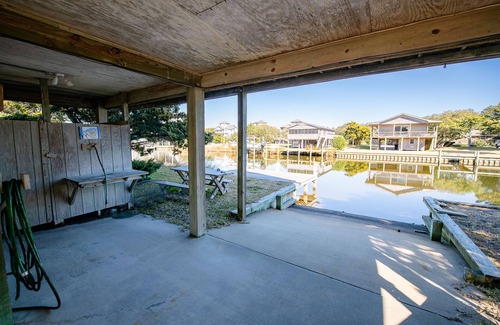 Featuring: open concept living area with washer/dryer, stainless appliances, ac, wireless internet, primary bedroom with private bath, wrap around deck, enclosed screened front porch, basketball hoop, surfboards, paddleboard, corn-hole, gas grill, new dock.
