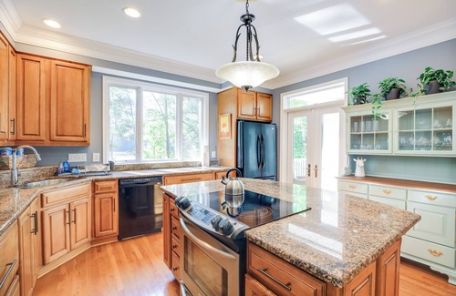 Embrace your inner mariner at this nautical 4-bedroom, 3-bathroom Lusby vacation rental. While the spacious house itself boasts plenty of charm — including multiple living areas, kids’ supplies, and outdoor entertainment areas — the striking beauty of St Leonard Creek awaits just steps away. When you're ready to opt outside and explore the area, take your pick from a leisurely ride using a paddleboard, canoe, or kayak, a waterfront beach day, or a scenic hike in one of the local state parks.