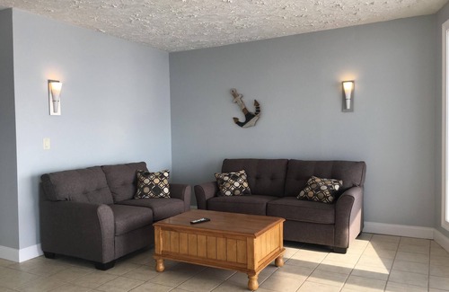 This unit (Vista Two) is walkout basement level with panoramic views of beautiful Oneida Lake. The larger bedroom one has 2 queens and second bedroom has full bed and one bunk bed. There is a covered patio, 30 foot dock for dangling feet, fishing or tying a small boat ie personal watercraft, kayak or pontoon. The waterfront is rocky and shallow.. Large shore front windows allow you the most majestic of views. This unit shares two kayaks and one stand up paddle board for your recreational use as well. The marine life and wildlife in the area are abundant and a nearby golf course makes this a perfect getaway for sportsmen./women who fish, boat, swim or golf. Nearby casino and shopping finishes off this perfect location.I