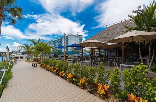 Cape Crossing Resort & Marina has so much to offer. Relax by the pool & hot tub, stay in shape with our fitness center and dry sauna. Fish from the shore or stroll along the water's edge on our boardwalk with your furry friend. Adventure is just steps away, check out our Cape Crossing Boat Rentals with kayaks, paddle boards, Craig Cats, and seasonal Bioluminescent tours. Or take the whole family on gentle paced tour of the rivers with one of their pontoon boats. Enjoy lunch or dinner at Dolphins Waterfront Bar & Grill, this huge outdoor tiki hut has amazing views. Enjoy the cool island breeze along with creative specialty drinks and a Florida fresh menu which has something for everyone.