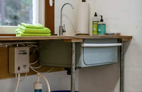 Private outdoor shower space where you can haul water from the creek, heat on the stove and use our battery-operated showerhead - the work is worth it! If you'd rather you can use our charming wash basin for a kettle bath. We provide body wash, shampoo, conditioner and towels.