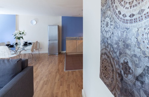 A delightful apartment in the heart of Nottingham's city centre. Near to theatres, restaurants, stadiums, shopping malls and a one minute walk from Nottingham train station. Stroll into market square, from where you can shop till you drop, then wine and dine the night away.