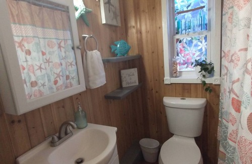 We are Superhosts elsewhere and look forward to earning Premier status on here. Welcome to the Beach House! Though not on the beach, this home is inspired by our local area which is well known for our soft sand beaches. There is a nearby park for the kiddos, a kayak launch, fishing pier, boat launches, etc. Pensacola NAS is also just a short drive from the home. Guests have full use of the home, carport, and small sectioned backyard with deck for sitting, though don't have access to the garage or the main backyard where owner's still keep personal items. Guests do have a deck in the backyard to enjoy with a privacy fence. Only 5 minutes to downtown Pensacola and 15-20 minutes to the beach. Gentrification is occurring in Pensacola neighborhoods and you will see a mix of homes (new construction to updated to those not yet revitalized), but it is generally quiet and very safe. Contactless check-in/out via electronic front/side door locks. Garbage/recycle cans on location and maintenance will stop by to move them to the curb and back in place on schedule. Free WiFi. Older construction, but clean home! Parking on driveway and under the carport. Please, No smoking/vaping! Beach House is over 50 years old and, though greatly cared for, shows its age in some places. Expect to find some loving wear, quaint aging and charming patina both inside and outside. It is a block-built home, which was once the rage in Florida as they can generally withstand up to 250mph wind, though they don't tend to have the same aesthetic appeal as a traditional stick built home, therefore requiring a little more creativity with colors. :) The home boasts two bedrooms and one full bath. Bedrooms have queen beds. The home has central heat and air conditioning. The living room and one bedroom have TVs, though you will need to use your own login credentials for access to Prime, Netflix, Hulu, etc. We do have the Tubi app installed and The Roku Channel, which have news stations and movies available with no logon needed. No cable is provided. We continue to make upgrades when the home is vacant. There is a washer and dryer in the home for your use, though you will need to supply your own detergent. There is a toaster and single serve Keurig coffee maker in the kitchen, as well as all of the typical pots/pans needed to make a home meal. Spare linens for the beds are in the linen closet when booking longer than 2 night stays, as well as bath/beach/hand towels and washcloths. The dining table can seat 4-6. There are 4 chairs and a small tables for use on the deck or under carport. 5 minutes to downtown Pensacola and 15-20 minutes (depending on traffic) to Pensacola Beach. We strive to keep costs down for our guests and don't charge fees for typical cleaning, though we do still pay our housekeeping staff and request that our guests try to leave the home as tidy as possible at check-out in order to maintain our lower nightly rates. We hope you enjoy your stay. *Please note, for privacy reasons and in accordance with their policy, VRBO doesn't release the exact address of the property until 30 days before check-in; if your check-in is less than 30 days from booking, the address is released shortly after booking.