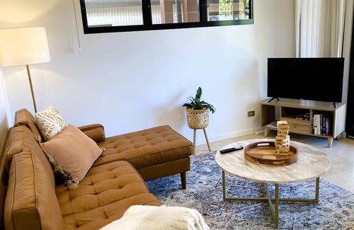 Self-contained separate guesthouse, King Bed, luxurious bathroom, separate living, equipped kitchen, high end appliances, washing machine and all cooking/dining equipment.