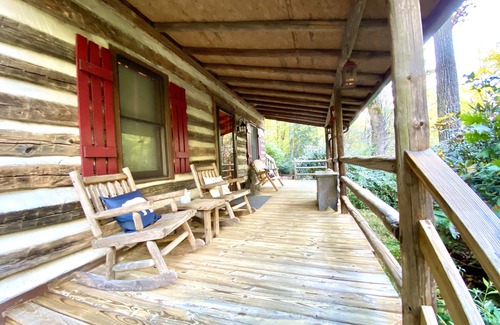 Enjoy the peaceful mountain life in a rustic log cabin with all the modern comforts. This authentic log cabin was built in 1994 with reclaimed logs. Enjoy the serenity of sitting in front of the fire of the gas logs or listening to the stream as you rock on the decks and porches.
