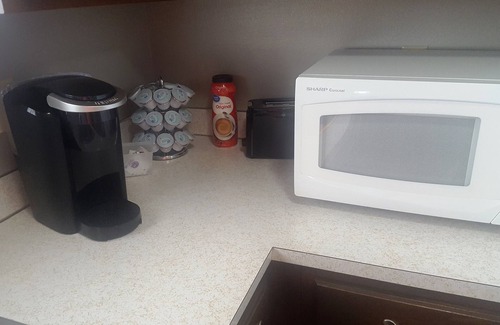 Upon arrival you will enter entry foyer leading to the living room, kitchen and dining room. The living room is furnished with a large sectional couch and one accent chair for encouraged relaxation. You can enjoy watching movies on a 55” smart TV with blue ray player, free Netflix or stream your favorite movies via our free Wi-Fi. The dining room is open to the kitchen area. The kitchen is fully stocked with spices/herbs/coffee, cookware, glassware and dinnerware and coffee maker everything you may need is provided. Just grab your groceries and you’re set to prepare your favorite home cooked meals. There is a laundry facility in the unit with a washer and dryer and we do supply basic laundering supplies.