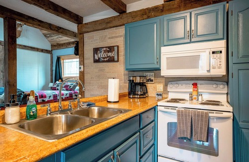 The cabin features streaming channels, electric fireplace, kitchen, 1 and 1/2 bath, and covered porch with outdoor furniture. The kitchen has pots, pans, plates etc. You will need to bring spices and your food. We have a gas and charcoal grill. Remember to bring charcoal, lighter fluid and firewood. There is a gas station and Dollar General 5 minutes from the cabin.