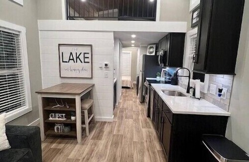 In house laundry, fully stocked kitchen, and nice bathroom makes your stay a little easier. Please remember that this cozy tiny home loft is accessible via stairs and doesn't allow standing room.